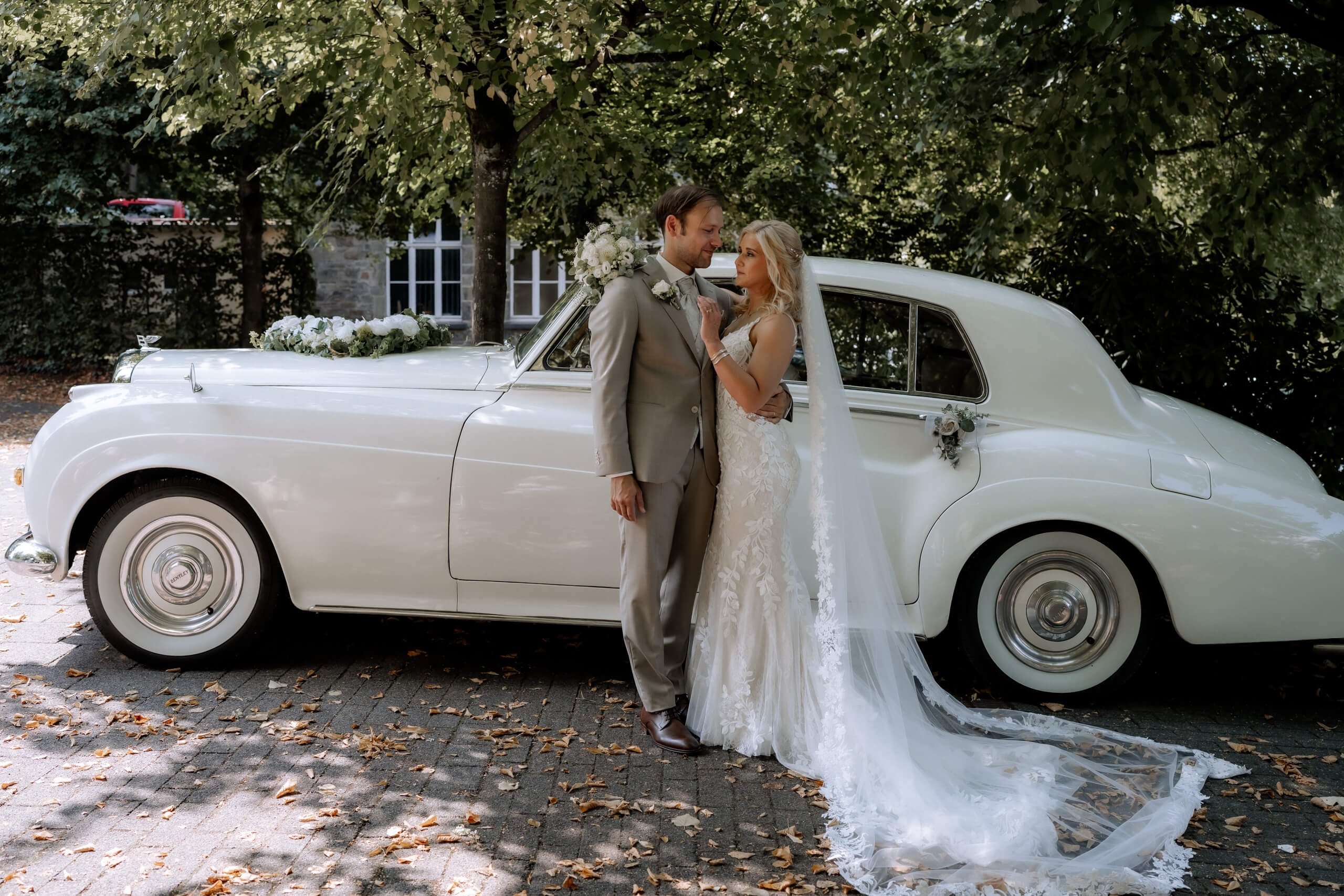 Die Hochzeit von Alina und Matthias hatte so einiges zu bieten. Nicht nur, dass das Brautpaar super sympathisch ist und auch als Model für Brautmoden einen super Job machen könnten, die ganze Hochzeit hatte einfach Stil. Klar, ein weißer Bentley ist schon was sehr cooles, aber auch die Trauung in der Evangelischen Kirche in Beyenburg hatte schon etwas. Als Hochzeitsfotograf merke ich immer sehr schnell, ob die Hochzeit „was hat“. Ein Blick auf den Bildzähler in der Kamera und dann das Erschrecken: „sooo viele Bilder schon“. Das ist immer ein Zeichen für tolle Hochzeiten 😉